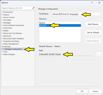 The projects should be compatible also with newer versions of Atmel Studio, the last version is available from [https://www.microchip.com/mplab/avr-support/avr-and-sam-downloads-archive https://www.microchip.com/mplab/avr-support/avr-and-sam-downloads-archive]. <br/> | The projects should be compatible also with newer versions of Atmel Studio (last version known as Microchip Studio), the last version is available from [https://www.microchip.com/mplab/avr-support/avr-and-sam-downloads-archive https://www.microchip.com/mplab/avr-support/avr-and-sam-downloads-archive]. <br/> | ||