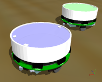 The following videos show 3 Elisa-3 robots moving around in the environment avoiding obstacles thanks to their proximity sensors and then going to the charging station autonomously; some black tape is placed in the charging positions to help the robots place themselves thanks to their ground sensors. The movement and charging is indipendent of the gravity. It works also vertically and up-side-down.