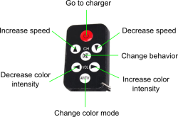 There are many available behaviors for the robot that can be chosen using the related button on the tv remote (put the selector in position 15); in sequence: