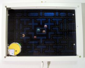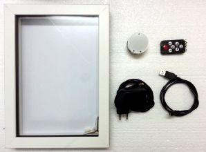 Since the Elisa-3 robot is able to move vertically we got the idea to put the Elisa-3 inside a picture frame and let it perform various animations. The video shows only a set of possible behaviors that exploit the sensors and actuators of the robot, but many others behaviors can be implemented; here are some technical information: