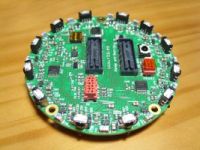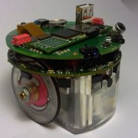 This is Elisa-3, an evolution of the Elisa robot with 5 cm of diameter. It now includes a series of new sensors: 8 IR proximity and 4 ground sensors. The Atmel microcontroller is Arduino compatible. <br |